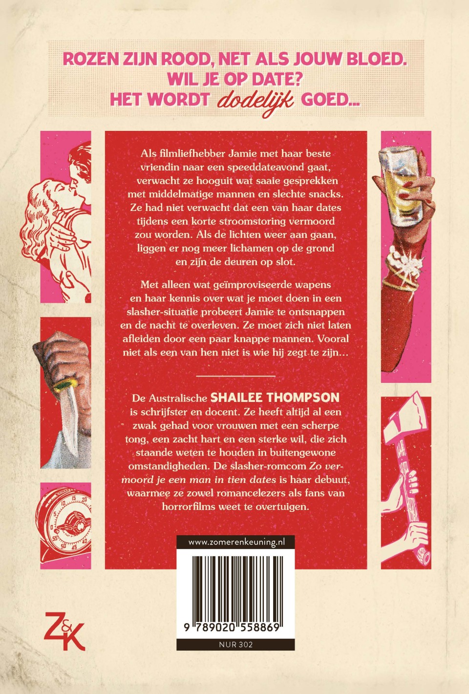 In 'Zo vermoord je een man in tien dates' van Shailee Thompson, een romcom met een bloederig randje, verwacht Jamie Prescott hooguit wat saaie gesprekken en een snack tijdens een speeddatingavond. Maar als tijdens een stroomstoring een van haar dates wordt vermoord en de dode lichamen zich die avond opstapelen, verandert flirten in overleven. Met alleen wat geïmproviseerde wapens en haar kennis van slasherfilms tot haar beschikking, strijdt Jamie tegen een gemaskerde moordenaar én tegen haar gevoelens in een onverwachte liefdesdriehoek.